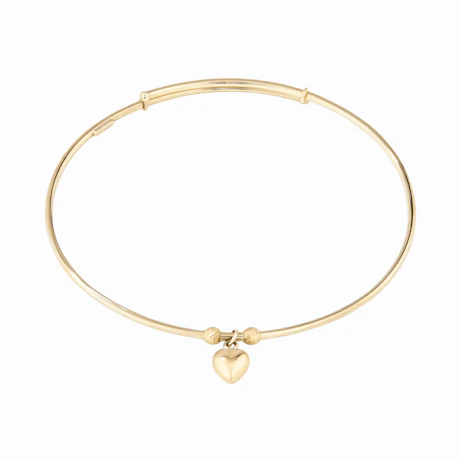 60mm Heart Charm Bangle in 9kt Yellow Bonded Gold, $349